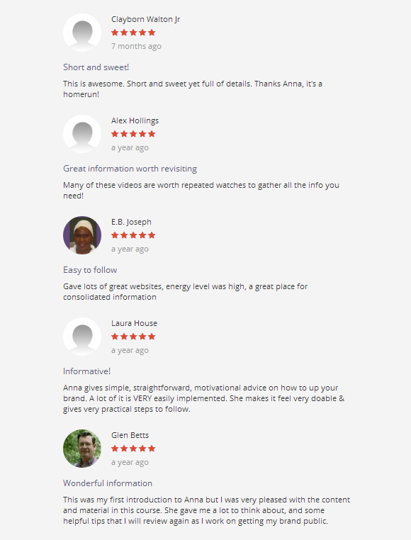 Now included: Free email consultation with course creator Anna David, a New York Times-bestselling author who's appeared on dozens of national TV shows. When you've finished the course, email her at [email protected] with your specific questions about how to grow your brand.